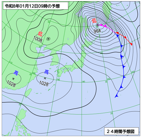 天気予報【晴れ 夜のはじめ頃 くもり 所により 夜のはじめ頃 まで 雪か雨】